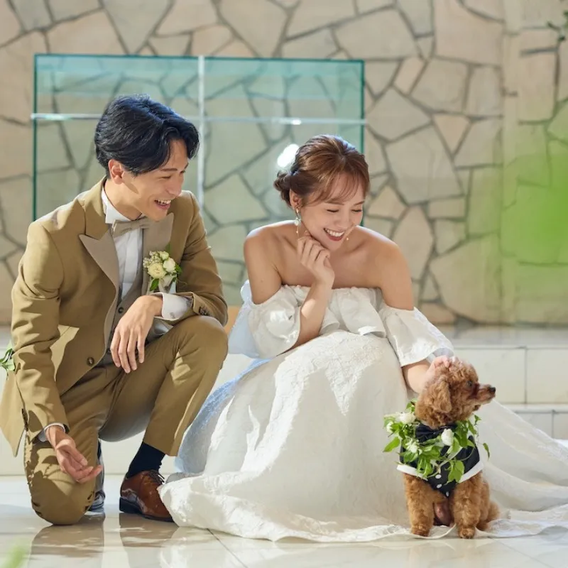 愛犬・愛猫と一緒に結婚式を挙げたい方へ。ガーデンやチャペルでペット参加が叶うスタイルをご紹介!実例紹介や当日の流れ・注意点まで専属プランナーが丁寧にご案内します。